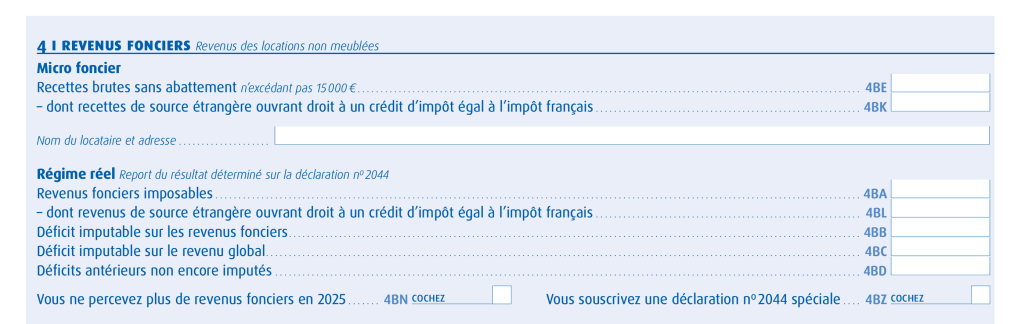 - 4BN : si vous ne percevez plus de revenus fonciers l’année suivante.